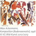 Von der ornamentalen Linie zur heiligen Fläche Der in Ilmenau aufgewachsene Max Ackermann (1887–1975) besuchte 1906/07 Henry van de Veldes Modellierkurse, die er in seinem Tagebuch festhielt. Experimente mit der ornamentalen Linie entwickelte er später zur abstrakten Flächengestaltung als seinen individuellen Beitrag zur ‚Weltsprache Abstraktion’.